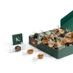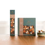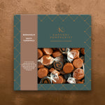Unsere neuen Boxen sind plastikfrei und bestehen aus FSC-zertifizierten Materialien. Die Karamellbonbons sind in kompostierbares Zellophan mit OK Compost Home-Zertifizierung eingewickelt. Denken Sie daran, Ihren Müll entsprechend den örtlichen Bestimmungen zu trennen.