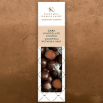 Karamell mit dunkler Schokoladenüberzug und Meersalz / Sahne und Meersalz in dunkler Schokolade