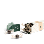 Unsere neuen Boxen sind plastikfrei und bestehen aus FSC-zertifizierten Materialien. Die Karamellbonbons sind in kompostierbares Zellophan mit OK Compost Home-Zertifizierung eingewickelt. Denken Sie daran, Ihren Müll entsprechend den örtlichen Bestimmungen zu trennen.