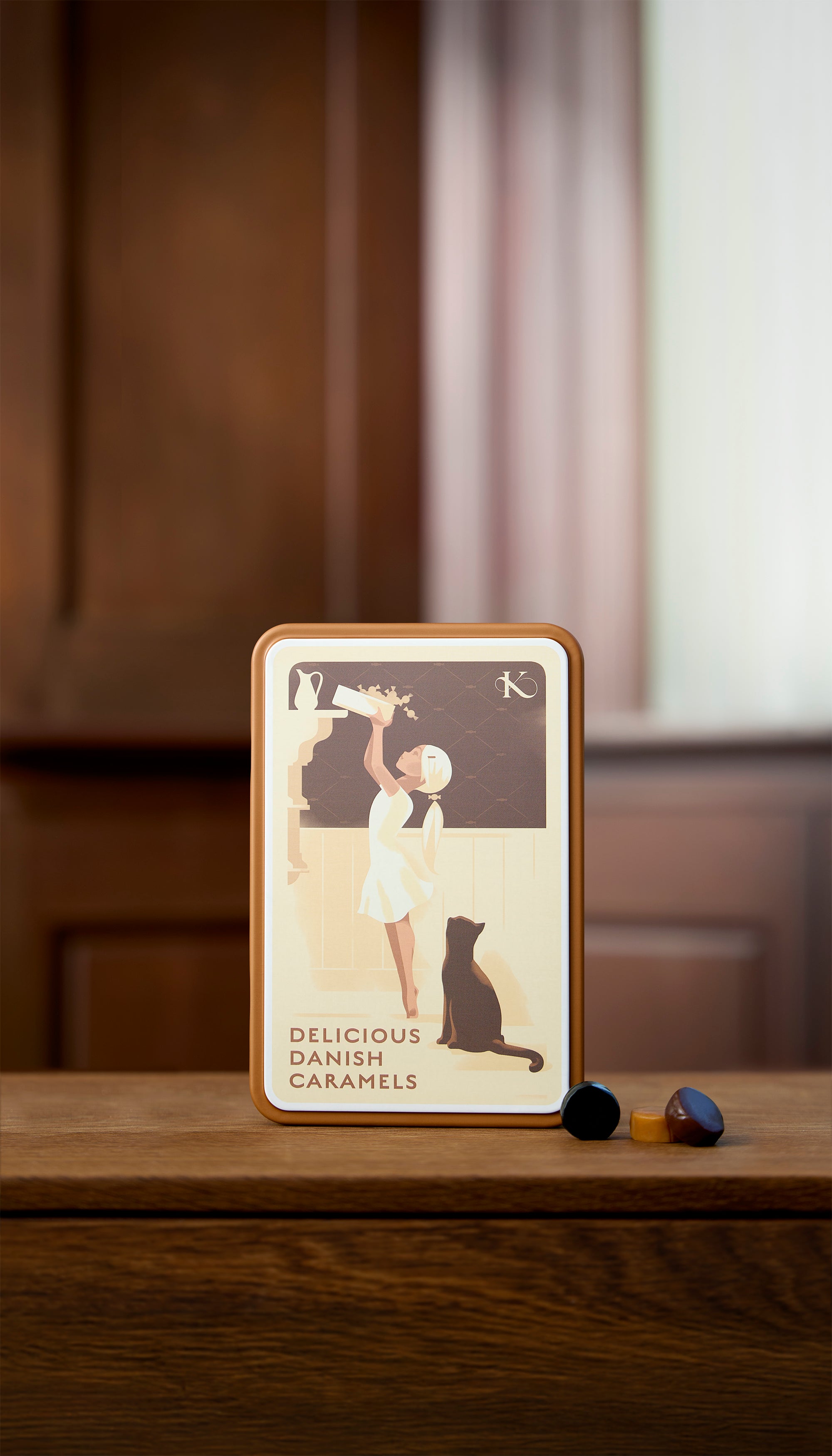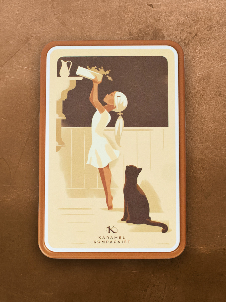 Der talentierte Künstler Mads Berg hat das wunderschöne Motiv für diese Dose exklusiv für Karamel Kompagniet entworfen. Die Illustration ist direkt auf die Dose gedruckt, die 236 g Gudhjem – Classic Blend mit den Karamellsorten Classic Cream, Classic Licorice und Classic Chocolate enthält.
