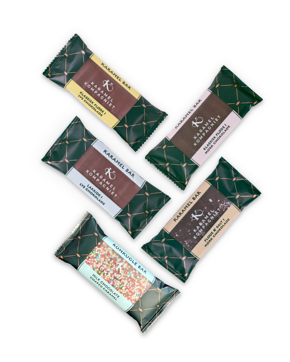 Smagspakken giver dig den fulde oplevelse af vores håndlavede karameller – pakket som lækre barer, der er lige til at tage med eller dele.