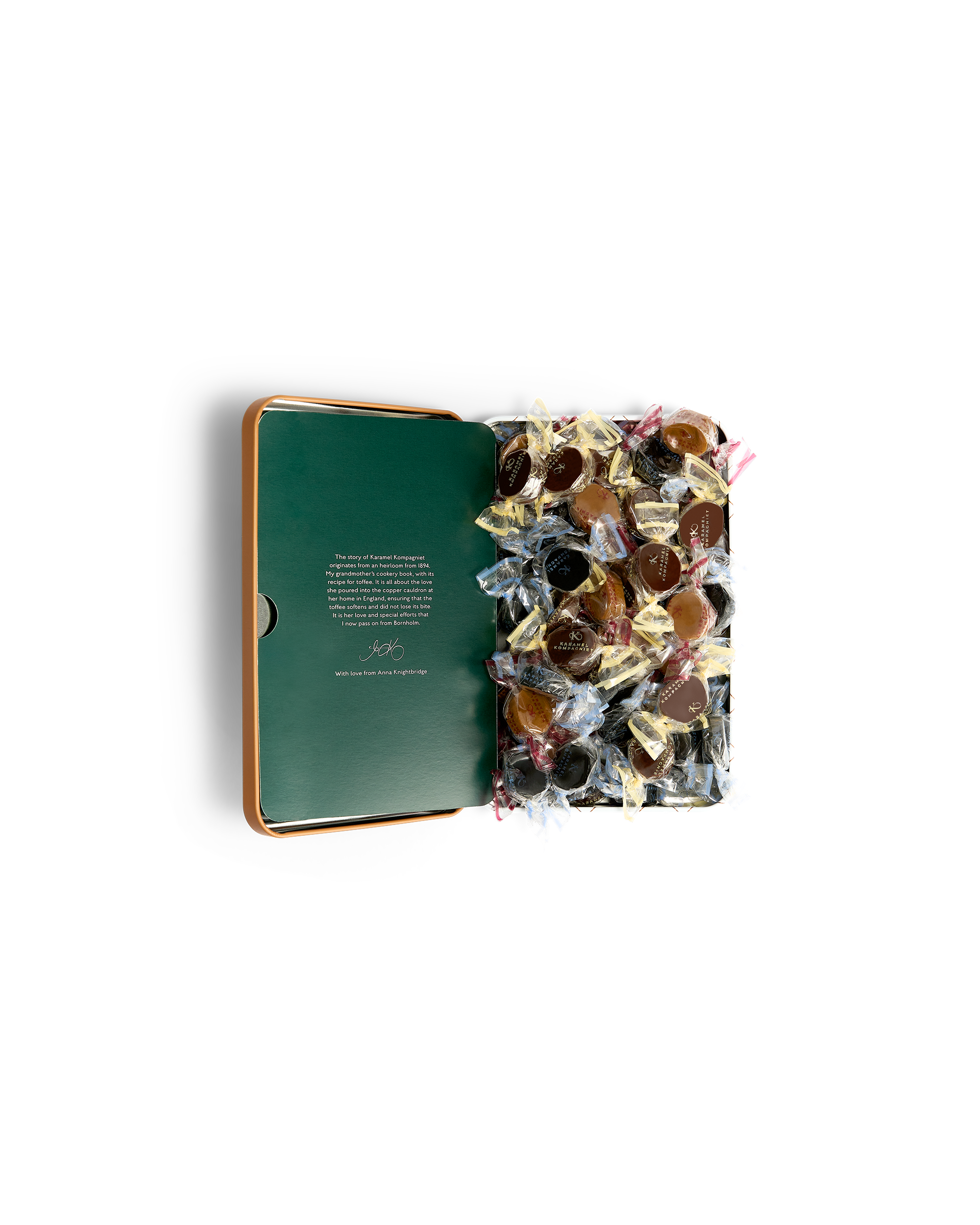 Inde i dåsen gemmer sig vores populære Højtidsblanding: en varm og hyggelig sammensætning af krydret julekaramel, chokoladekaramel og lakridskaramel – skabt til årets mest sanselige tid. Perfekt som adventsgave, mandelgave, personalegave eller bare en sød tak til én, der fortjener lidt ekstra.