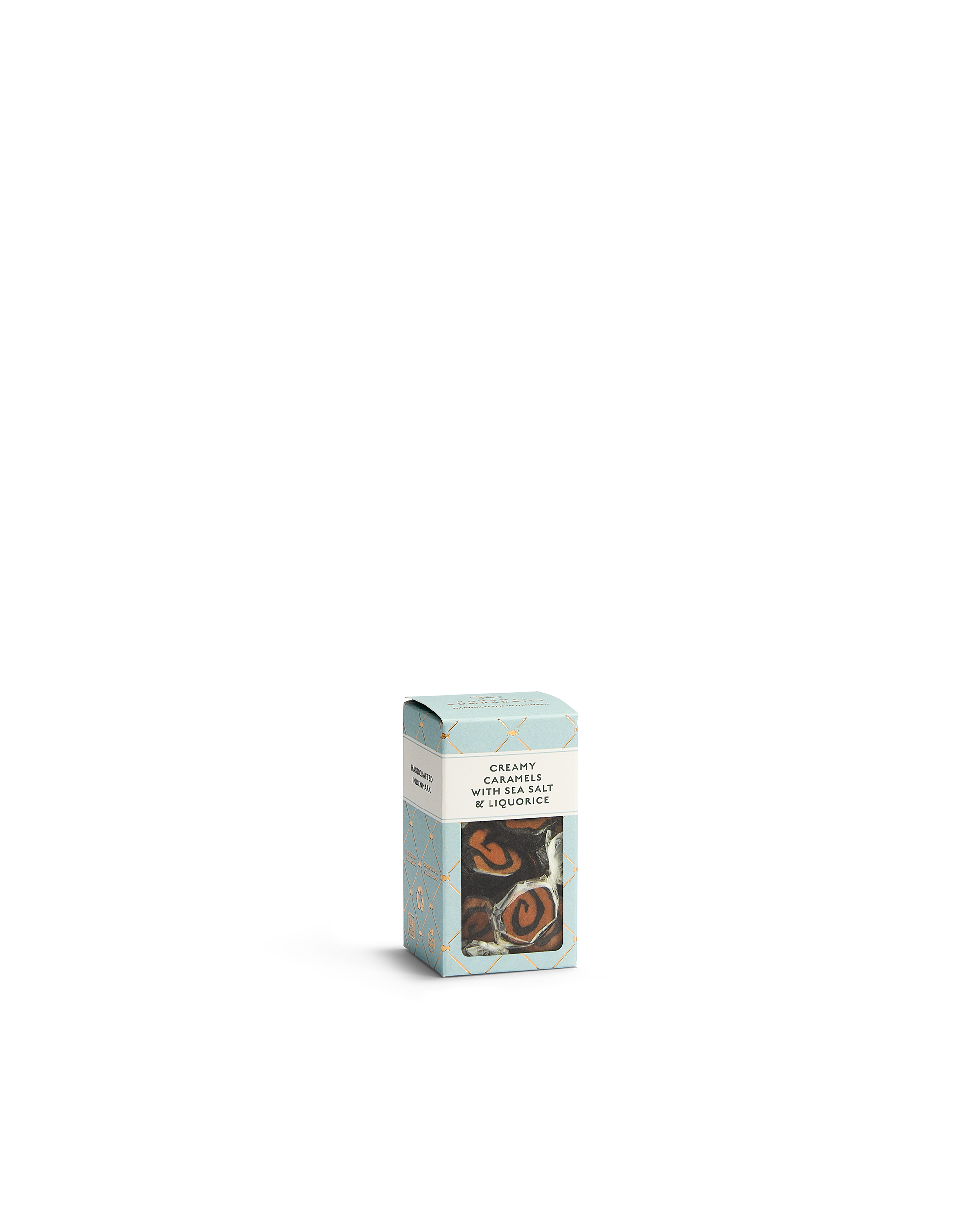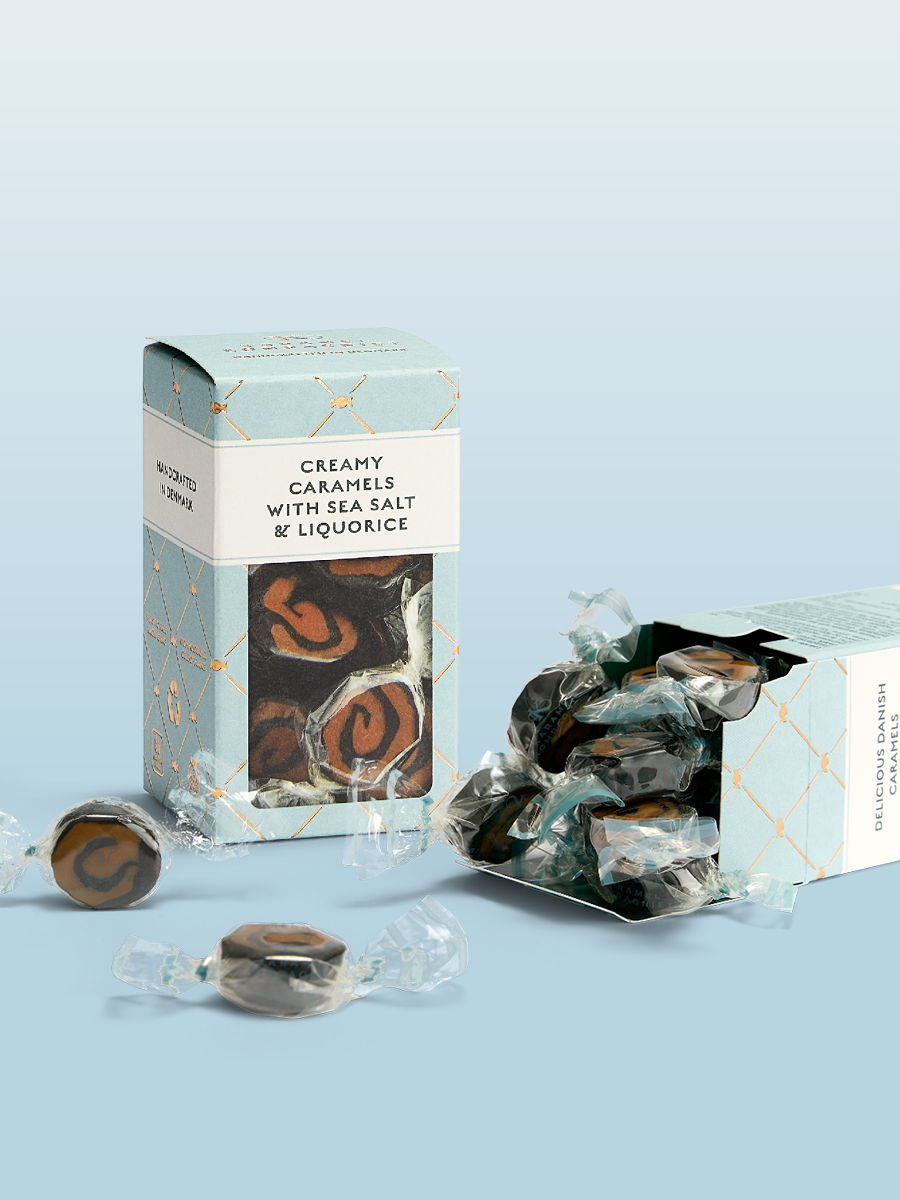 Bløde, håndlavede karameller med en rig og cremet karamelsmag, balanceret med havsalt og en klar, afrundet lakridssmag. Fremstillet med omhu og gode råvarer for en ren og velafstemt karameloplevelse.