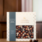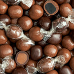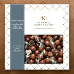 Mundgerechte Stücke runder, weicher Karamellbonbons in Schokolade. Mischung mit Lakritz in heller Schokolade, Sahne & Salz in dunkler Schokolade und Sahne & Salz in heller Schokolade.