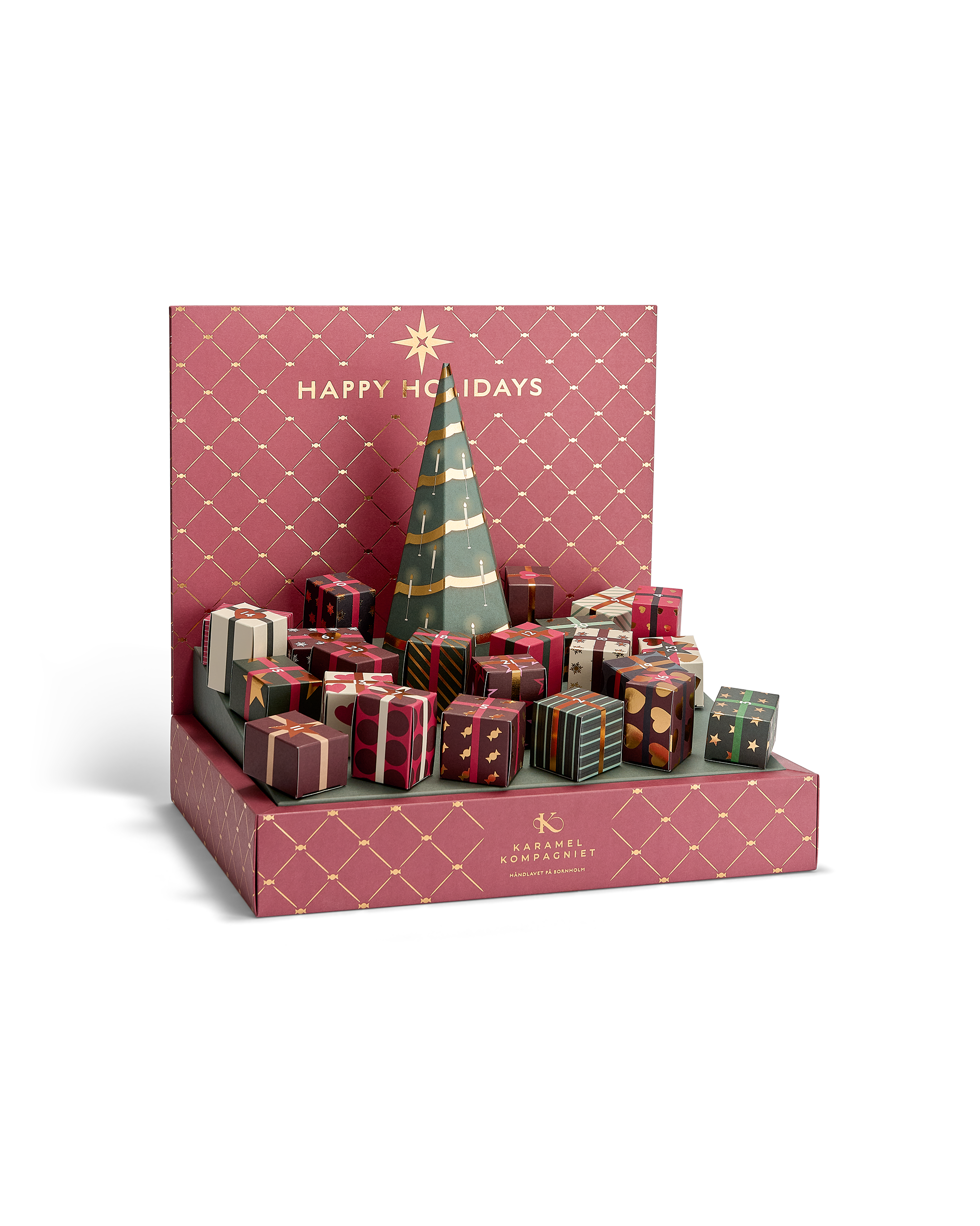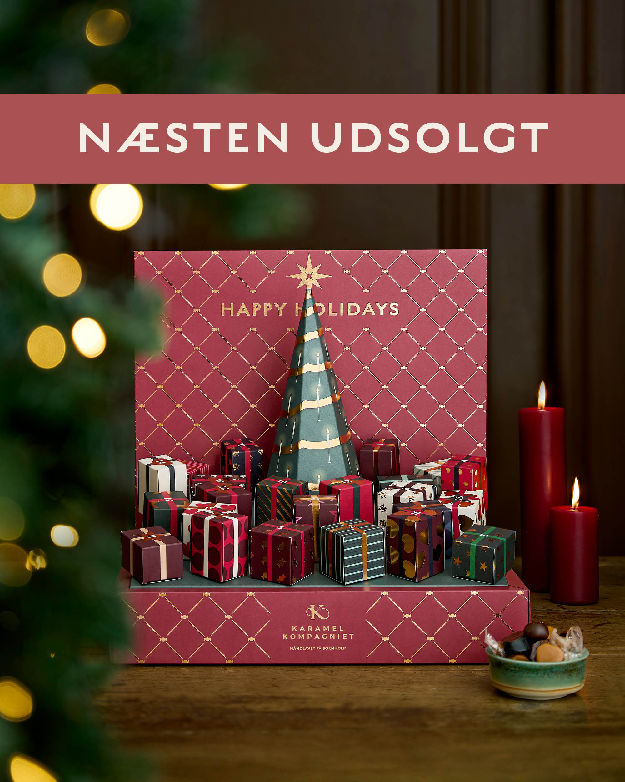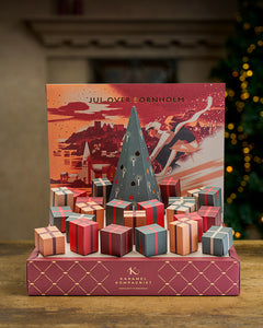 Jeden Tag im Dezember können Sie sich auf zwei zarte, handgemachte Karamellbonbons freuen, begleitet von einem stimmungsvollen Weihnachtsreim aus der Feder von Knud Romer. Die Verse bringen die Weihnachtsstimmung direkt unter die Haut und machen die Wartezeit zu etwas Besonderem.